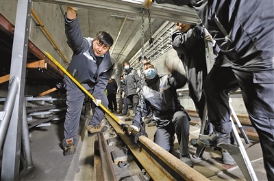 “我們的日常工作主要是對地鐵軌道線路進(jìn)行周期性檢查和計(jì)劃性維修,確保地鐵軌道設(shè)備狀態(tài)良好,保證電客車在線路上安全、平穩(wěn)、不間斷運(yùn)行。”田智宏對記者說:“維修對象主要是鋼軌和道岔,通過我們的起、撥、改等作業(yè),使得軌道幾何形位保持在標(biāo)準(zhǔn)值范圍內(nèi)?!?/p>