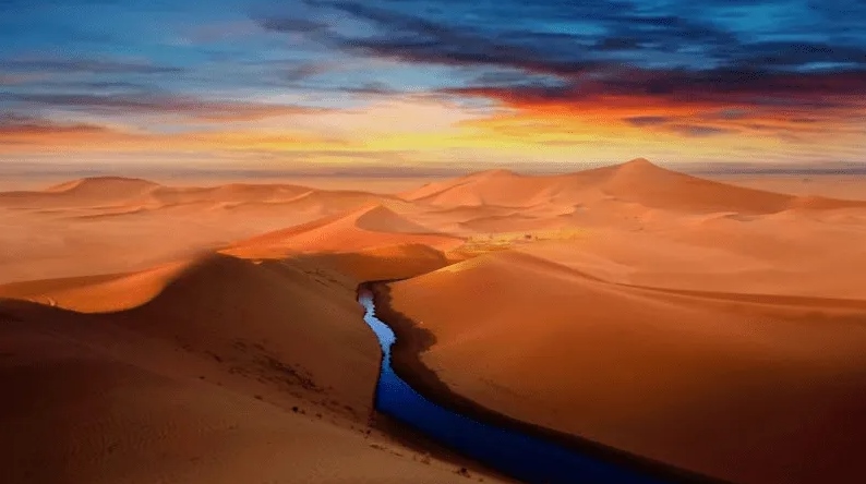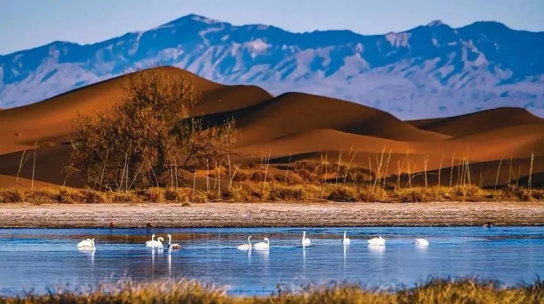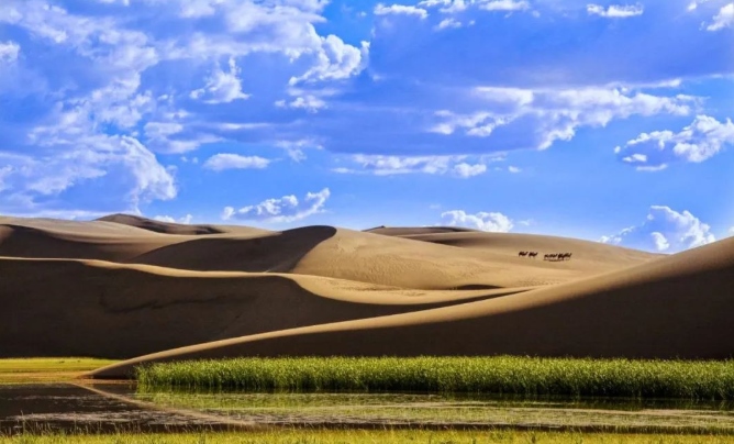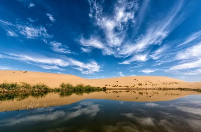 巴丹吉林沙漠年降水量不足40毫米,但是沙漠中的湖泊竟然多達(dá)100多個(gè)。高聳入云的沙山,神秘莫測(cè)的鳴沙,靜謐的湖泊、濕地,構(gòu)成了巴丹吉林沙漠獨(dú)特的迷人景觀,于2005年被《中國(guó)國(guó)家地理》雜志評(píng)為中國(guó)最美麗的沙漠,每年吸引了上萬(wàn)名國(guó)內(nèi)外游客前來(lái)觀光。