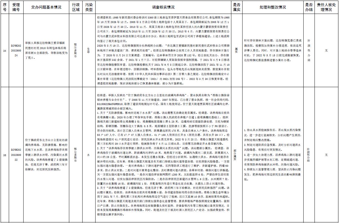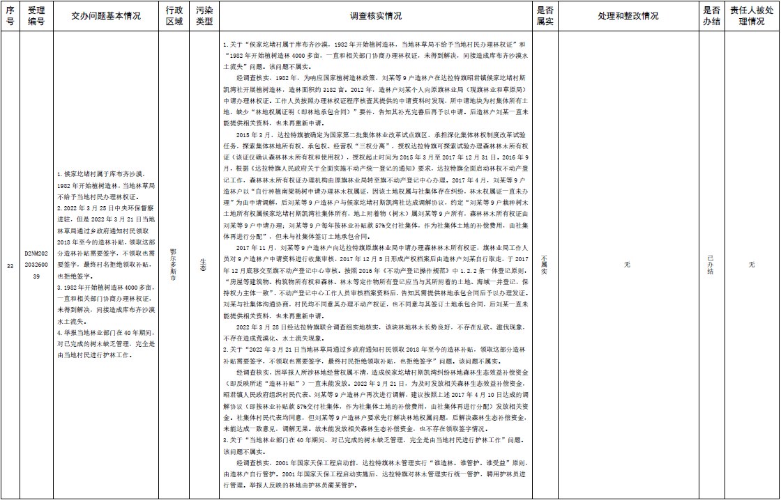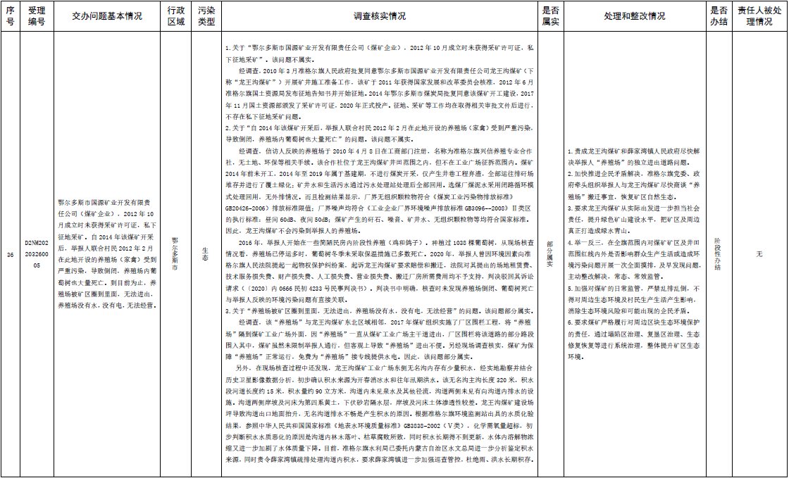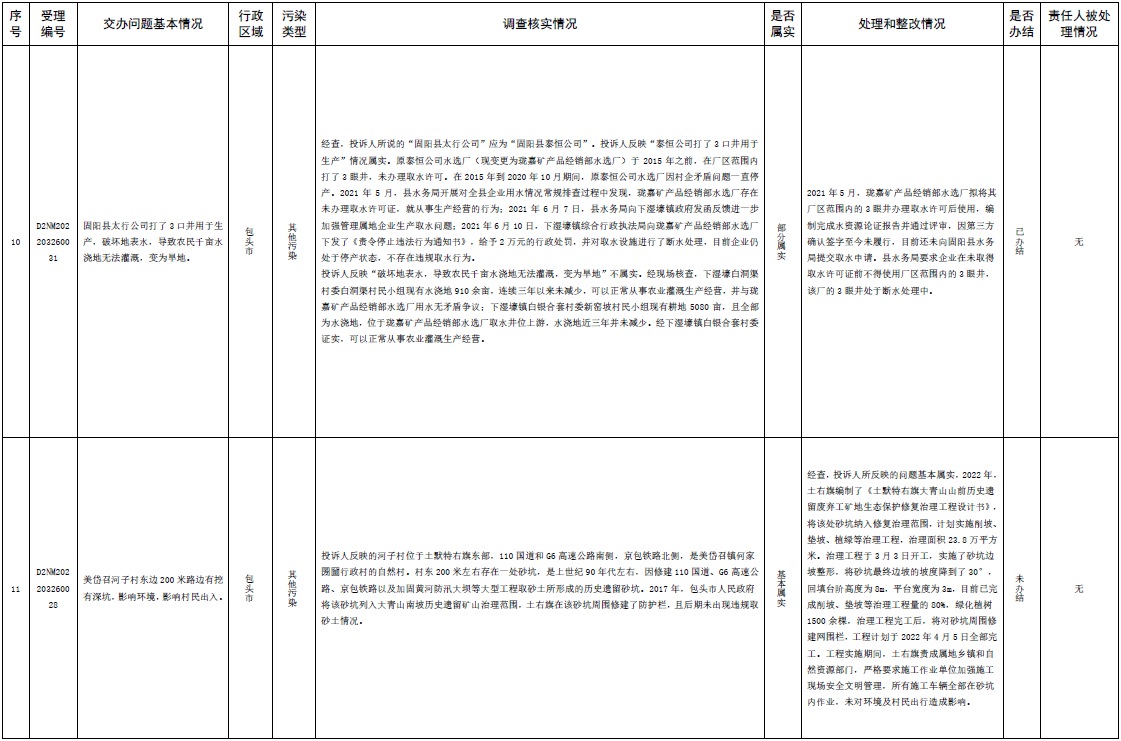 原標題:中央第三生態(tài)環(huán)境保護督察組交辦內蒙古自治區(qū)第二批42件群眾信訪舉報件辦理情況