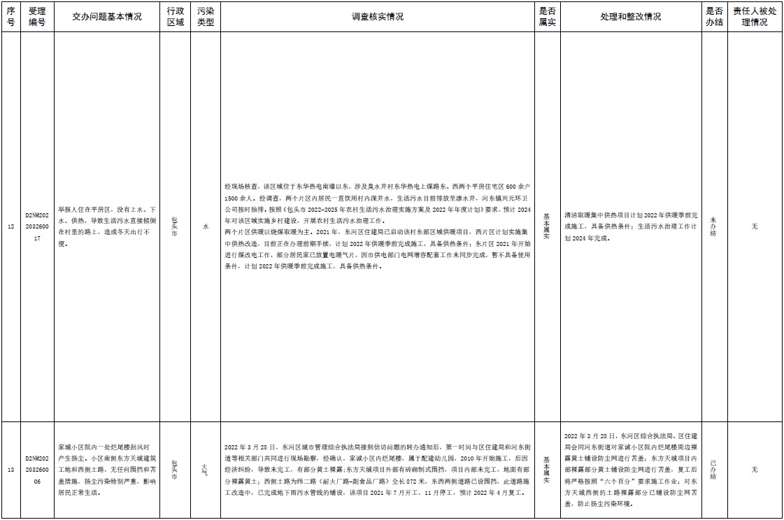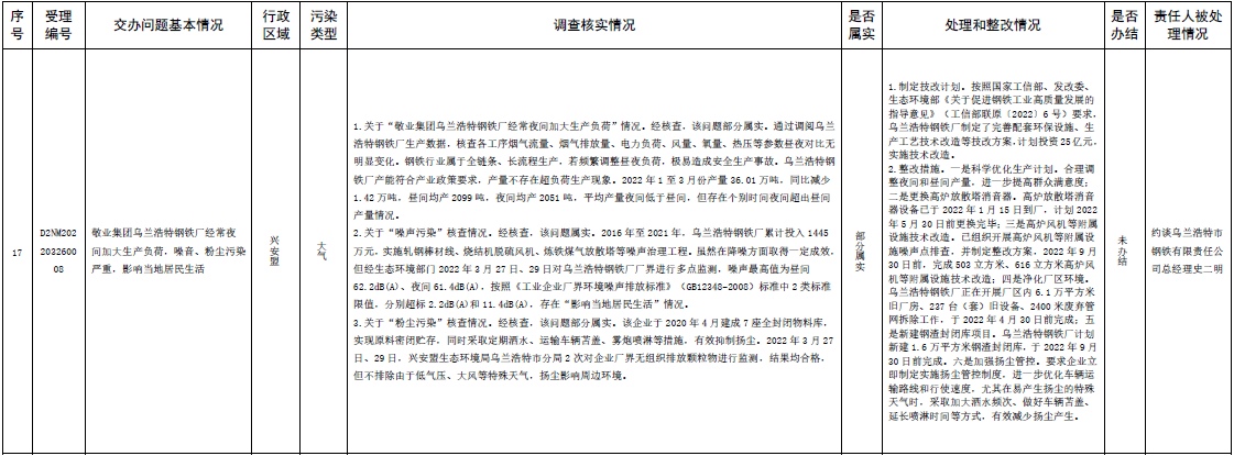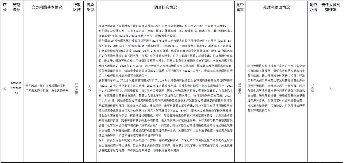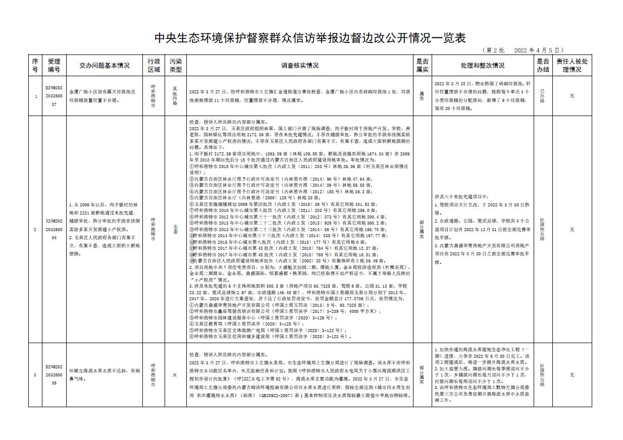原標題:中央第三生態(tài)環(huán)境保護督察組交辦內蒙古自治區(qū)第二批42件群眾信訪舉報件辦理情況