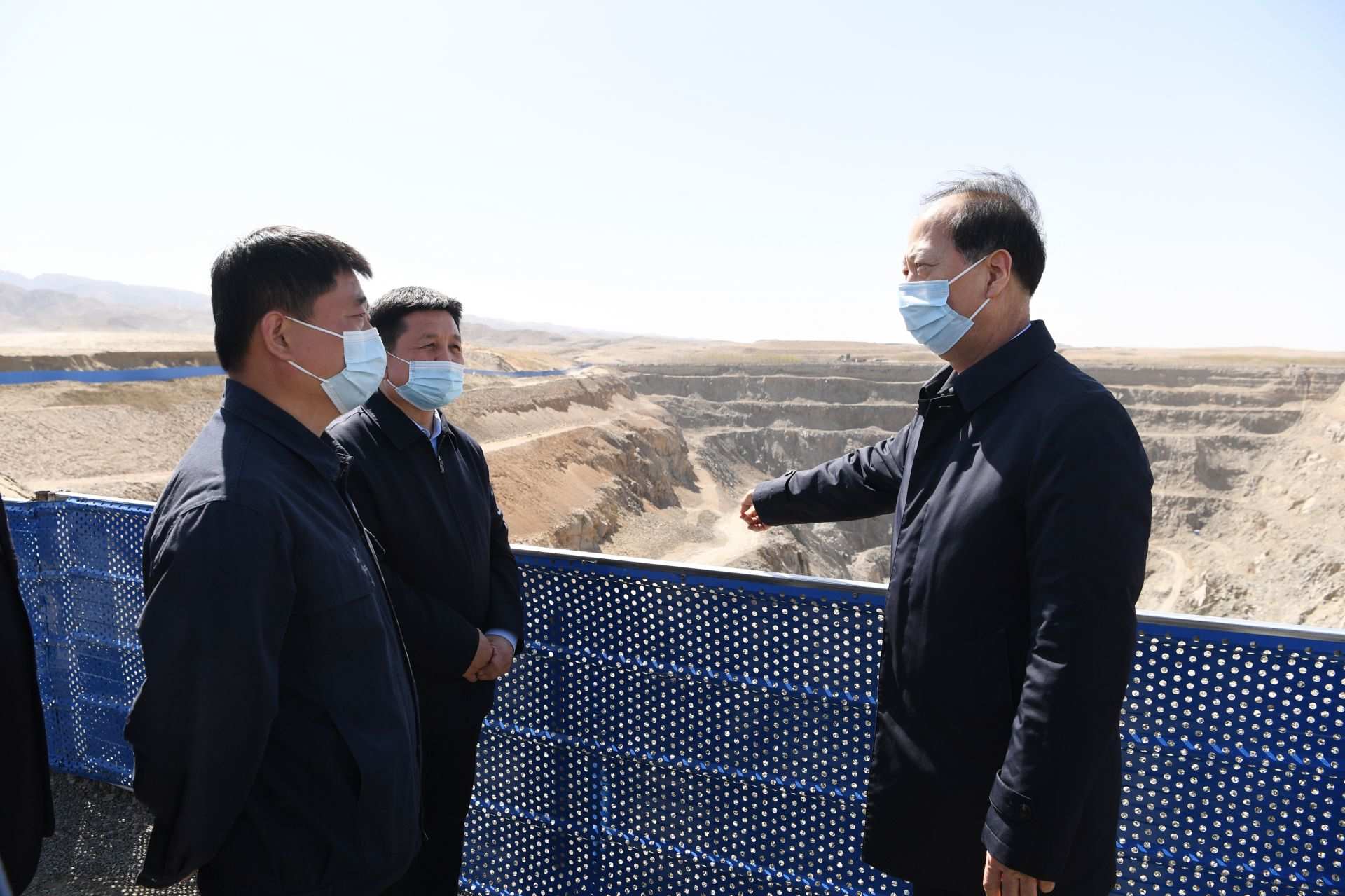 石泰峰首先來(lái)到華拓礦業(yè)公司阿力奔公忽洞鐵礦(原生金礦業(yè)公司),詳細(xì)了解越界開采、尾砂隨意堆放等問(wèn)題及整改治理情況??粗F礦開采挖出的大坑,現(xiàn)場(chǎng)還不時(shí)刮起漫天黃沙,他嚴(yán)肅指出,這種置法律法規(guī)于不顧的野蠻行徑,破壞和影響的不僅僅是當(dāng)?shù)氐纳鷳B(tài)環(huán)境,更是我國(guó)北方生態(tài)安全屏障、國(guó)家生態(tài)安全。他強(qiáng)調(diào),維護(hù)生態(tài)安全是必須始終牢記在心的“國(guó)之大者”,不論是企業(yè)還是政府都不能為了追求短期利益而不算大賬、長(zhǎng)遠(yuǎn)賬,不能以犧牲生態(tài)環(huán)境為代價(jià)換取一時(shí)一地的經(jīng)濟(jì)增長(zhǎng)。各級(jí)各方面都要做生態(tài)安全屏障的建設(shè)者、守護(hù)者,決不能做破壞者。