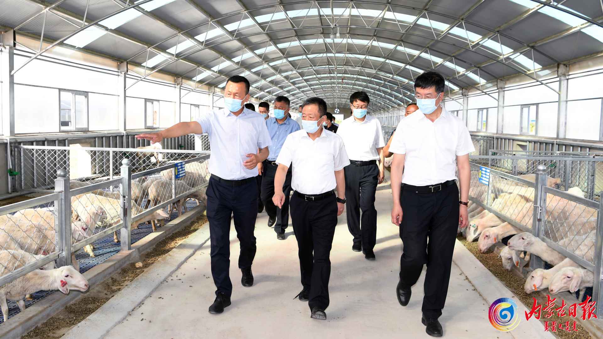7月4日,自治區(qū)黨委書(shū)記孫紹騁來(lái)到錫林郭勒盟錫林浩特市毛登牧場(chǎng)現(xiàn)代肉羊產(chǎn)業(yè)園核心區(qū),了解肉羊產(chǎn)業(yè)發(fā)展情況。記者袁永紅攝