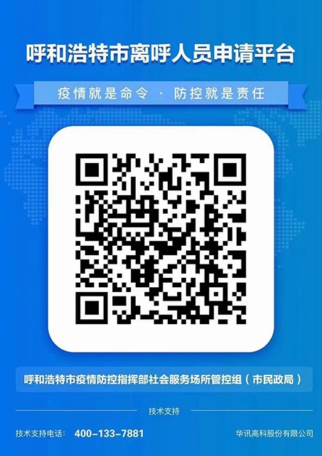 為進(jìn)一步優(yōu)化工作流程,方便離呼人員申請,加快審核速度,市民政局與華訊高科股份有限公司合作開通了《呼和浩特市離呼人員申請平臺》,離呼人員可通過掃描二維碼或鏈接填報申請,平臺將根據(jù)審核結(jié)果自動發(fā)放報告,進(jìn)一步方便群眾辦理離呼手續(xù)。平臺已于11月1日上午10時正式開通。同時,前期公布的郵箱將不再接收新的申報材料。