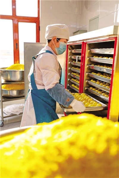 同樣,在該蘇木吉日花嘎查黨支部領辦的吉日花烏蘭香食品廠內,工人們也正忙著把蒸制好的黏豆包進行冷凍、真空包裝,準備發(fā)往各地。