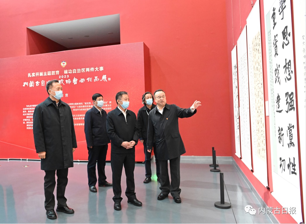 5月7日,孫紹騁來到內(nèi)蒙古美術(shù)館,參觀“扎實開展主題教育建功自治區(qū)兩件大事——2023年內(nèi)蒙古自治區(qū)政協(xié)書畫作品展”。