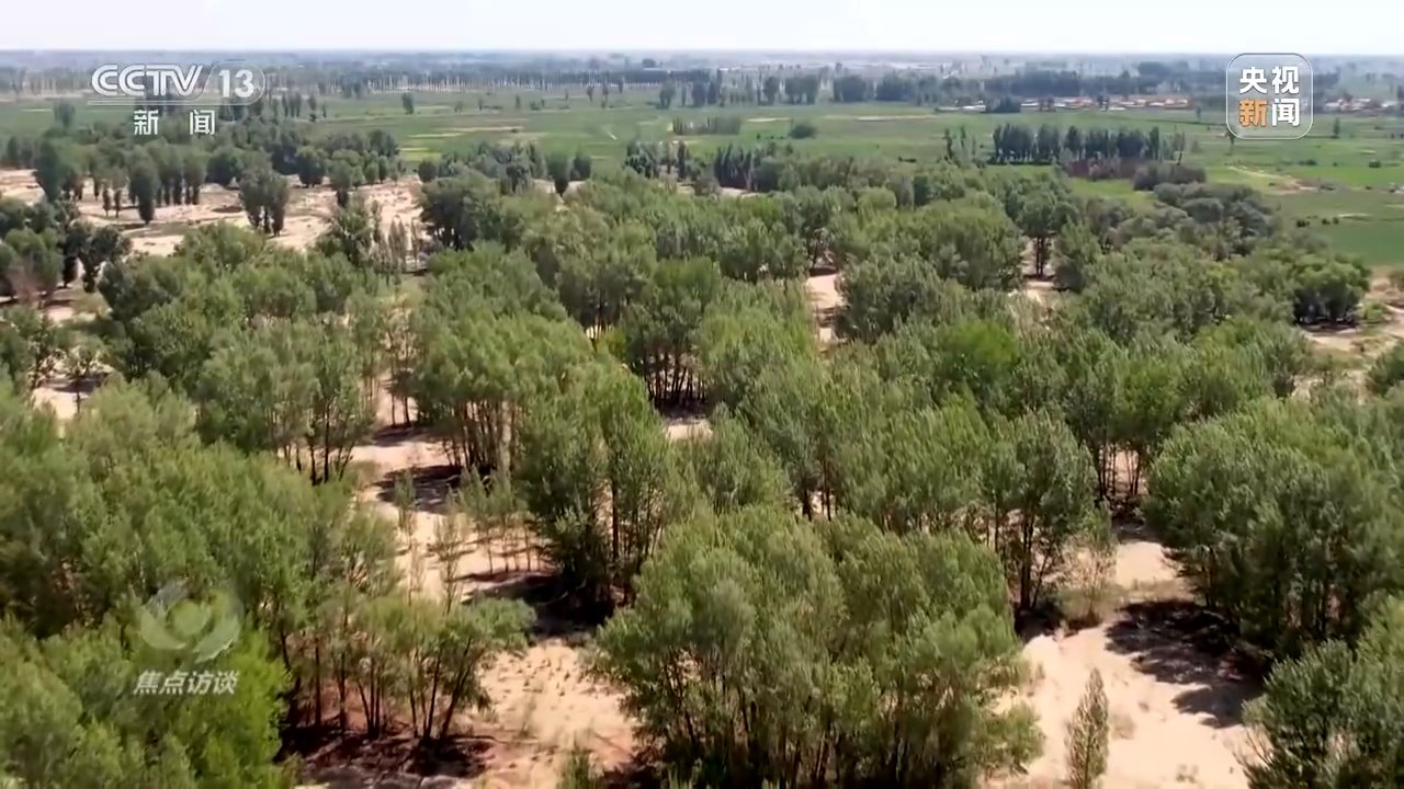 風(fēng)沙大是過去紅旗村村民們最憂心的事兒。如今,村民們之所以能夠踏踏實(shí)實(shí)種地,是因?yàn)椴贿h(yuǎn)處的巴彥淖爾市國營新華林場(chǎng)種下的這些郁郁蔥蔥的防風(fēng)固沙林,這些樹木成了農(nóng)田的“防風(fēng)防沙墻”。