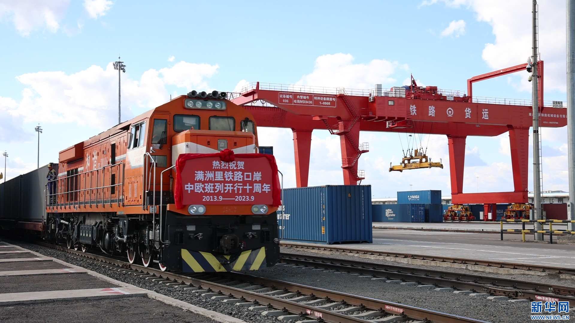 滿洲里鐵路口岸中歐班列開行十周年等待發(fā)車。新華網(wǎng)發(fā) (李新軍 攝)