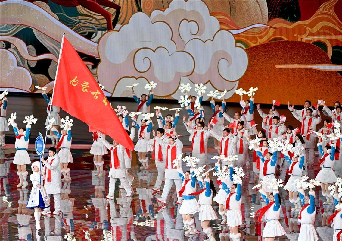 2月17日晚,第十四屆全國冬季運(yùn)動會開幕式在內(nèi)蒙古自治區(qū)冰上運(yùn)動訓(xùn)練中心速滑館舉行。開幕式分為開幕儀式、文體展演兩大部分。