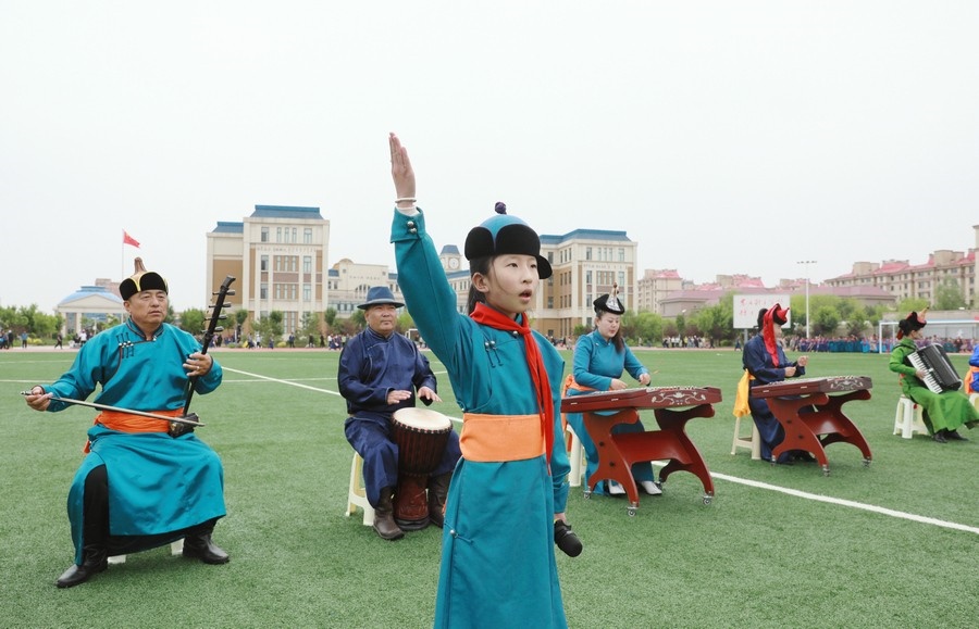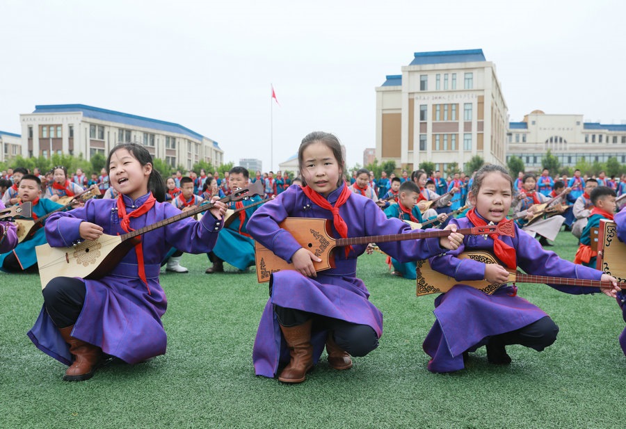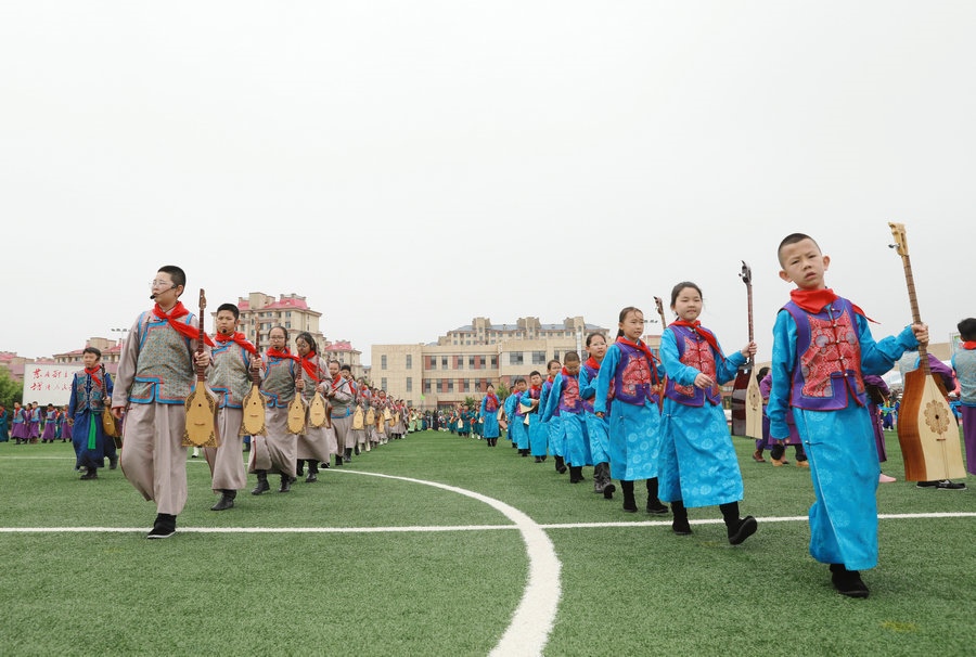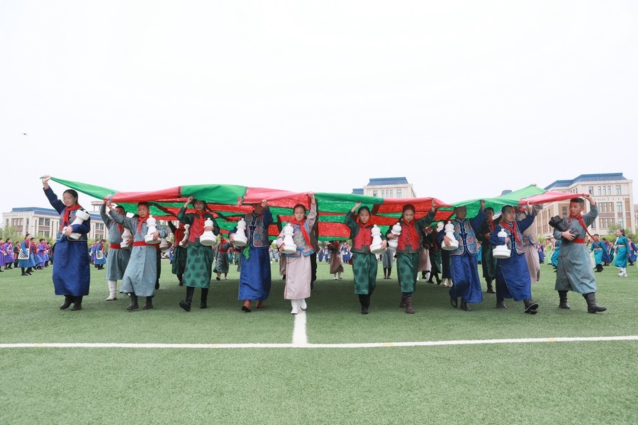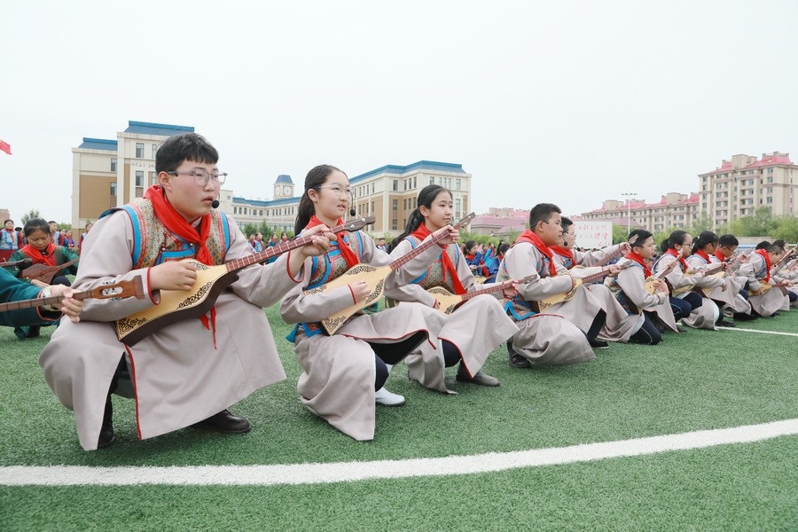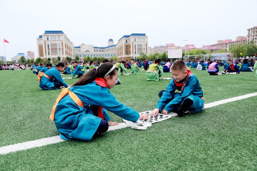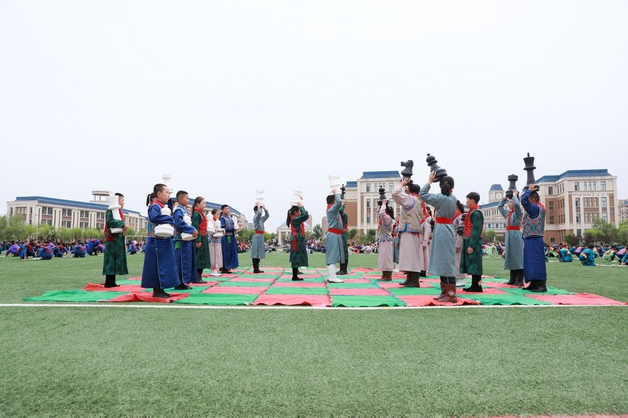 “今天參加4個‘千人文化’特色課程感到非常高興和開心。這4個課程讓我們的文化素養(yǎng)得到質(zhì)的提升,愉悅了身心?!蔽迥昙?25班的哈斯寶勒爾剛剛參加完特色課程展示。哈斯寶勒爾表示,這4個課程,比如玩象棋的話,可以提升自己的思維邏輯,讓自己的思路更加清晰,能夠提升學(xué)習(xí)成績;練習(xí)筷子舞,可以讓我們的心情變得更加愉悅,通過練習(xí)跳舞,讓我們身體的柔韌性更強;唱江格爾,能鍛煉我們的唱歌能力,還能讓我們把非物質(zhì)文化遺產(chǎn)傳承下去;踢足球可以鍛煉我們的體能。