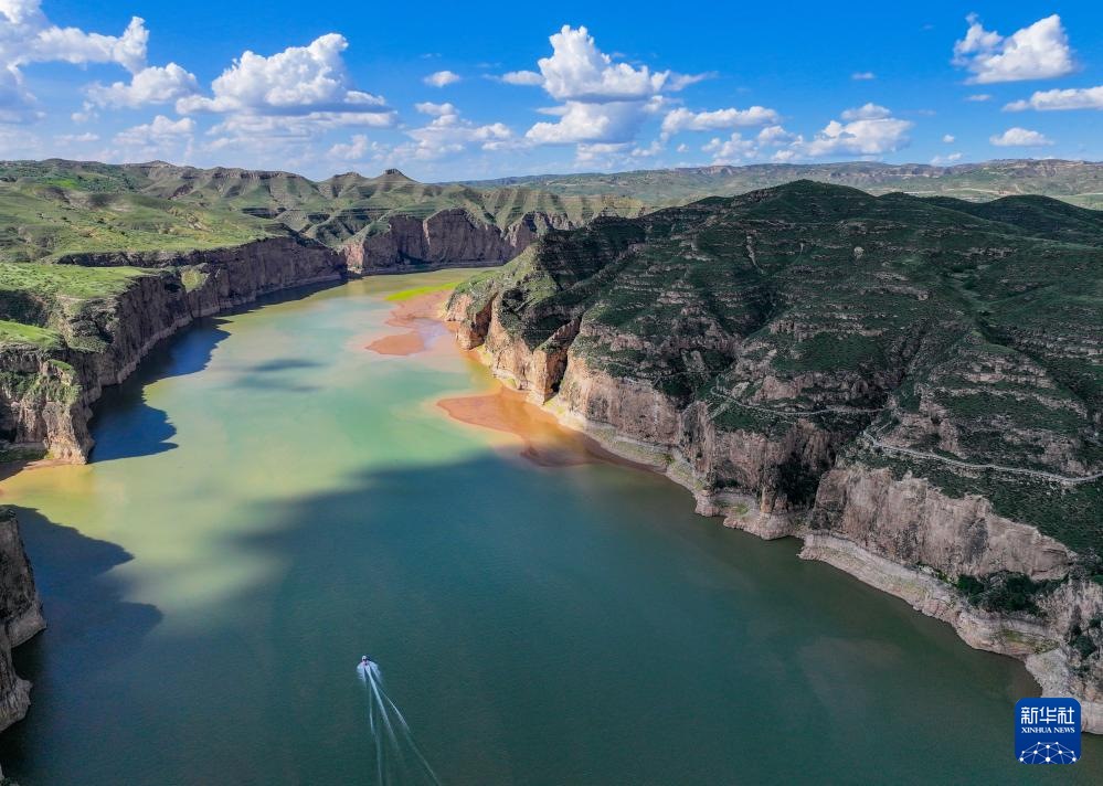 ??這是8月12日拍攝的老牛灣南側(cè)的一處黃河峽谷(無(wú)人機(jī)照片)。