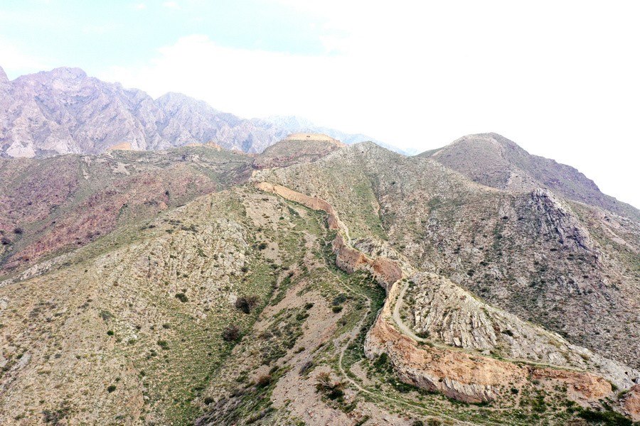10月12日,從空中俯瞰三關(guān)長(zhǎng)城。