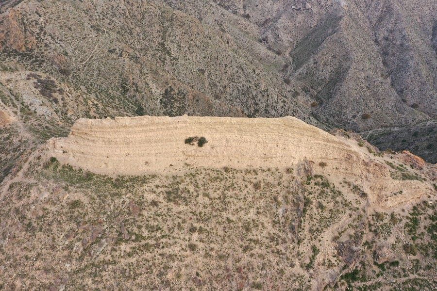 10月12日,從空中俯瞰內(nèi)蒙古與寧夏交界處的三關(guān)長(zhǎng)城。