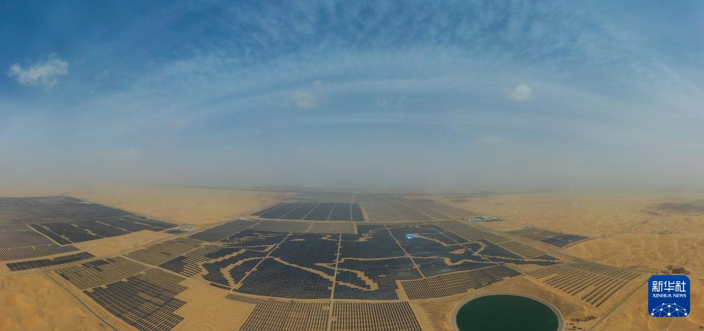 在內(nèi)蒙古自治區(qū)鄂爾多斯市境內(nèi)的庫布其沙漠里,一排排光伏板整齊地排列著,像是一幅藍(lán)色畫布在沙海中熠熠生輝。然而在過去,“黃沙遮天日,飛鳥無棲樹”是人們對(duì)這片沙海的印象。