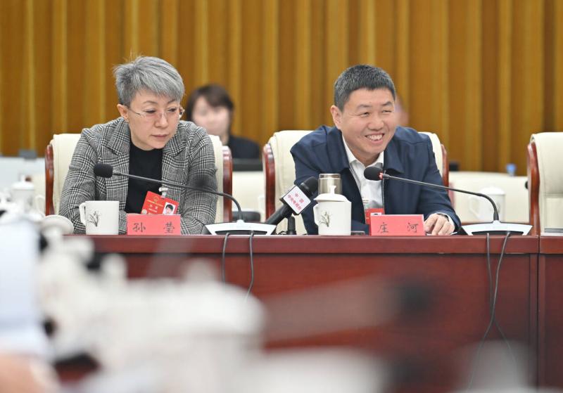 3月7日,全國(guó)人大代表莊河(右)說(shuō),中國(guó)鐵路呼和浩特局集團(tuán)有限公司將積極落實(shí)政府工作報(bào)告的相關(guān)要求,加強(qiáng)鐵路基礎(chǔ)設(shè)施建設(shè),優(yōu)化客運(yùn)產(chǎn)品,實(shí)現(xiàn)多樣供給,大力發(fā)展鐵路現(xiàn)代物流,發(fā)揮好鐵路對(duì)推動(dòng)經(jīng)濟(jì)社會(huì)高質(zhì)量發(fā)展的支撐保障作用。記者 馬建兵 攝