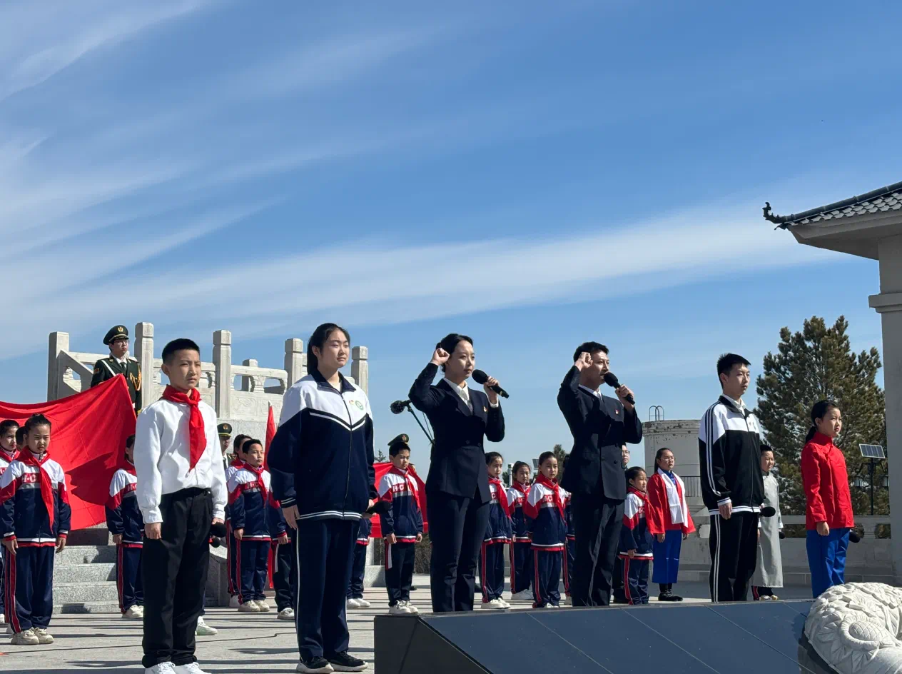 興安盟烏蘭浩特市烈士陵園內,松柏環(huán)繞,稚嫩而堅定的童聲響起,聲聲扣人心弦。興安盟教育系統(tǒng)組織千余名師生開展“清明祭英烈 共鑄中華魂”主題祭掃活動,以實際行動傳承紅色基因,致敬革命英烈。