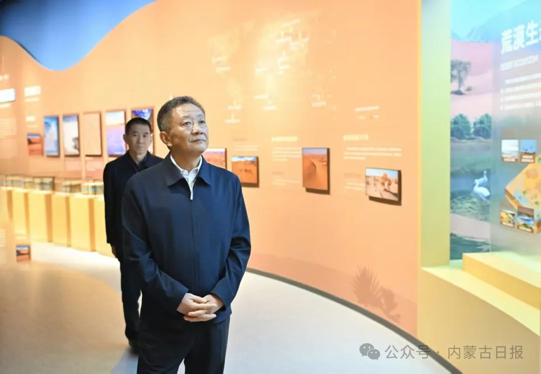 5月11日,自治區(qū)黨委書(shū)記孫紹騁在恩格貝沙漠博物館參觀,詳細(xì)了解荒漠化綜合防治的歷史沿革、理論成果和實(shí)踐經(jīng)驗(yàn)。草原云·內(nèi)蒙古新聞網(wǎng)記者 馬建兵