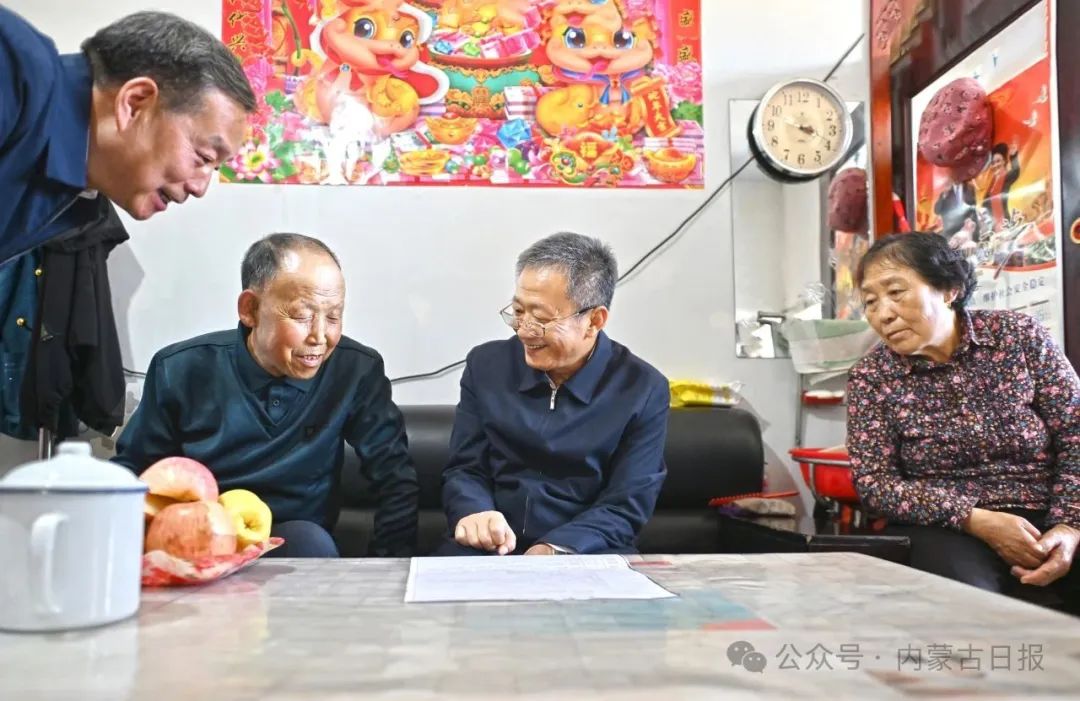 5月21日,自治區(qū)黨委書記孫紹騁來到調查記賬戶家中,認真了解種養(yǎng)殖、務工等收入情況。草原云·內蒙古新聞網(wǎng)記者 馬建兵 攝