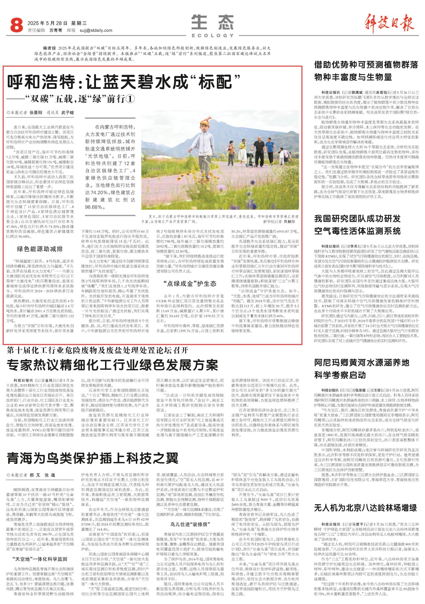 2025年5月28日,《科技日?qǐng)?bào)》第8版刊發(fā)了《呼和浩特:讓藍(lán)天碧水成“標(biāo)配”——“雙碳”五載,逐“綠”前行①》的文章,報(bào)道了內(nèi)蒙古呼和浩特“點(diǎn)綠成金”守護(hù)美麗生態(tài)?;鹆Πl(fā)電廠通過(guò)技術(shù)創(chuàng)新持續(xù)降低排放,城市軌道交通系統(tǒng)悄然鋪開(kāi)“光伏地毯”?!疤焖{(lán)、水清、地綠”已成為呼和浩特的城市“標(biāo)配”。
