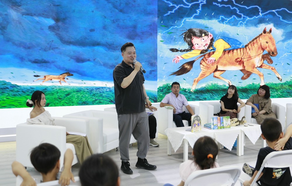 內(nèi)蒙古出版集團(tuán)展區(qū)正在舉行新書(shū)分享