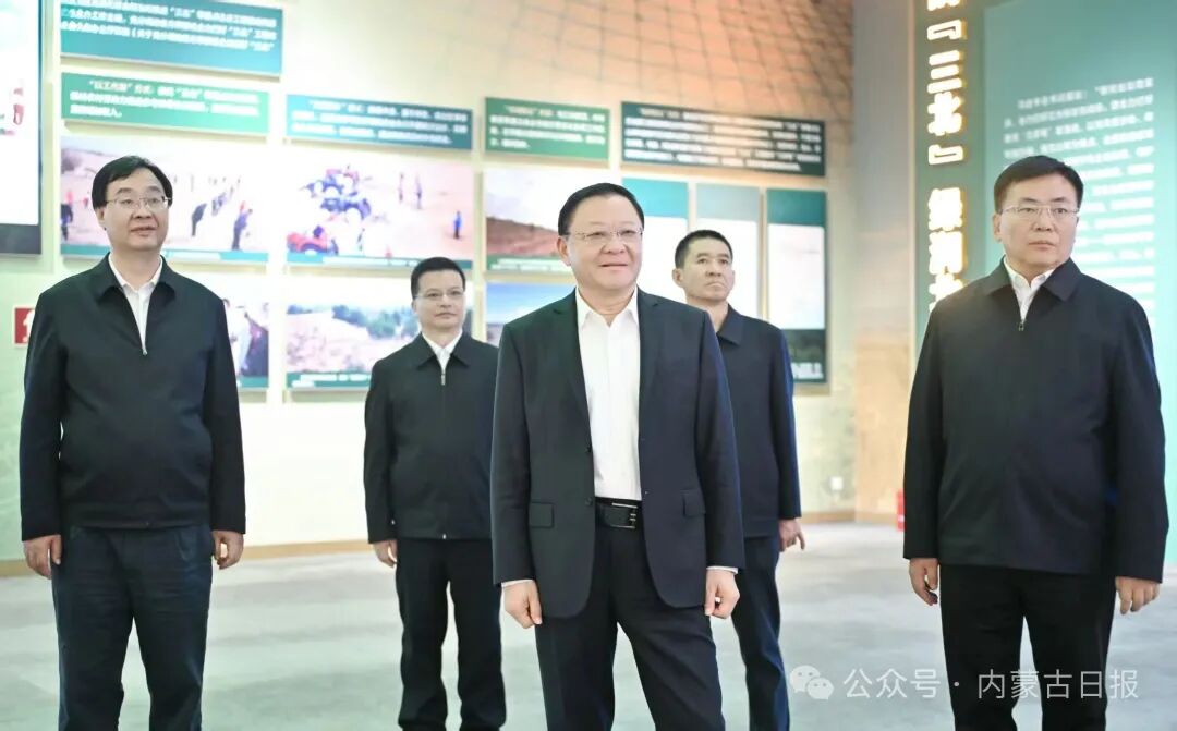 10月7日,自治區(qū)黨委書記、人大常委會(huì)黨組書記王偉中在內(nèi)蒙古展覽館參觀“綠色長(zhǎng)城 生態(tài)奇跡——內(nèi)蒙古防沙治沙和‘三北’工程攻堅(jiān)戰(zhàn)”主題展。草原云·內(nèi)蒙古新聞網(wǎng)記者馬建兵 攝