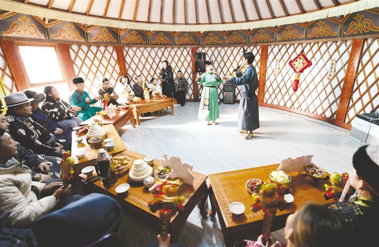 沒有華麗的舞臺,沒有炫目的燈光,氈房里騰出了近15平方米的空間,就是最接地氣的劇場。烏蘭牧騎隊員們與牧民們圍坐一圈,悠揚的馬頭琴聲如訴如慕,高亢的長調穿透氈房,唱進了每個人的心坎里。歡聲笑語交織著熱烈的掌聲,驅散了嚴寒,讓小小的氈房里充滿了節(jié)日的喜慶與家的溫暖。