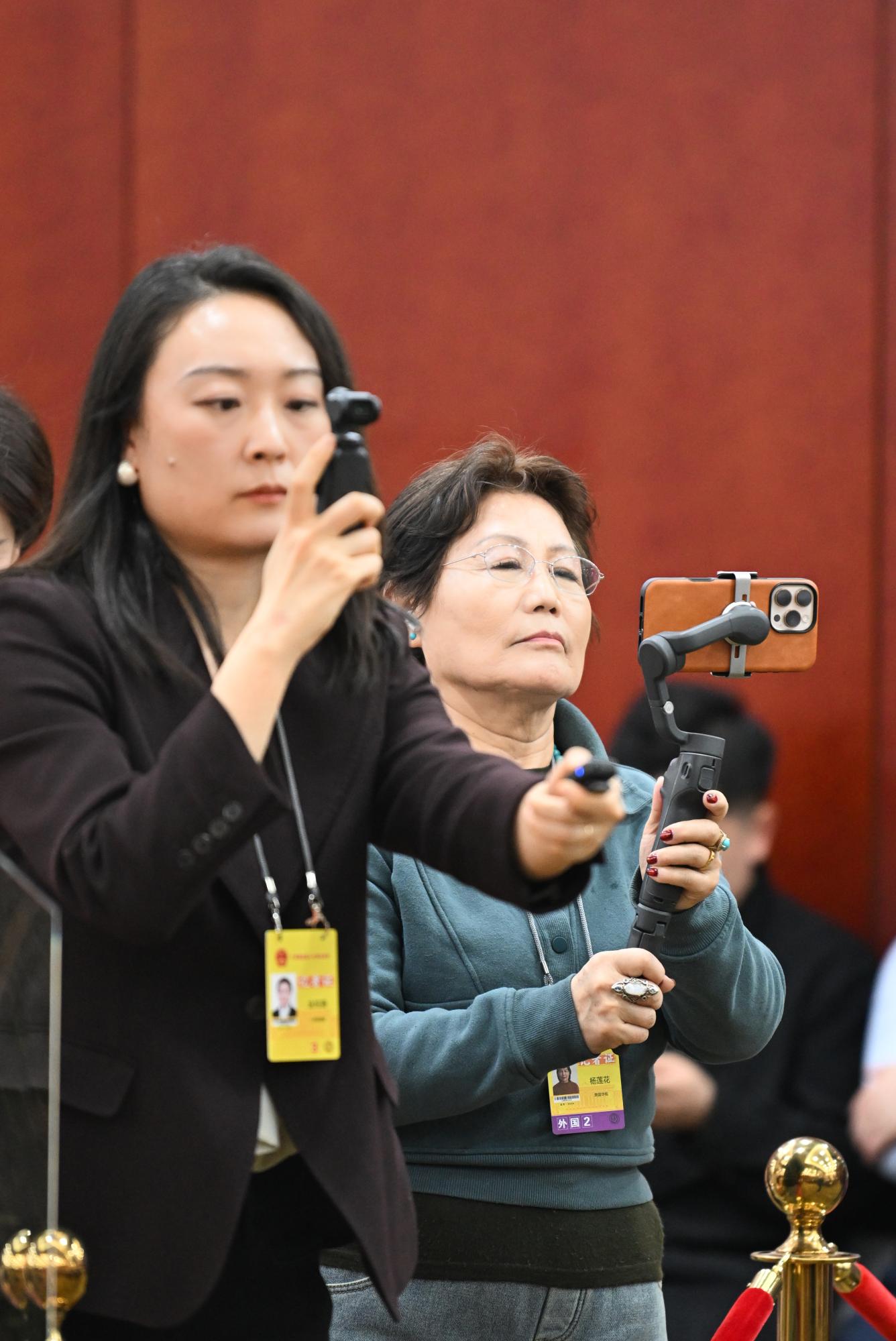 記者用手機(jī)錄制代表發(fā)言。草原云記者 馬建兵 攝