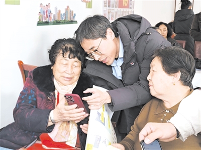 教老年人使用智能手機(jī)APP。(固陽(yáng)縣委組織部供圖)