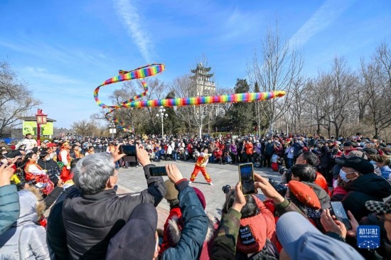 當(dāng)日是農(nóng)歷二月初二,又稱“春龍節(jié)”?!扒帻埆I(xiàn)瑞 玉兔呈祥”第四屆舞龍大會(huì)在天津市水上公園舉行,眾多市民群眾前來(lái)觀看舞龍、漢沽飛镲、空竹舞龍等特色民俗活動(dòng),感受傳統(tǒng)文化的魅力。