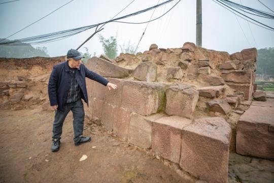 2月9日,在重慶合川釣魚(yú)城遺址,重慶市文物考古研究院副院長(zhǎng)袁東山在介紹新發(fā)掘出的位于類(lèi)似闕臺(tái)建筑基址上的宋井。新華社記者 黃偉 攝
