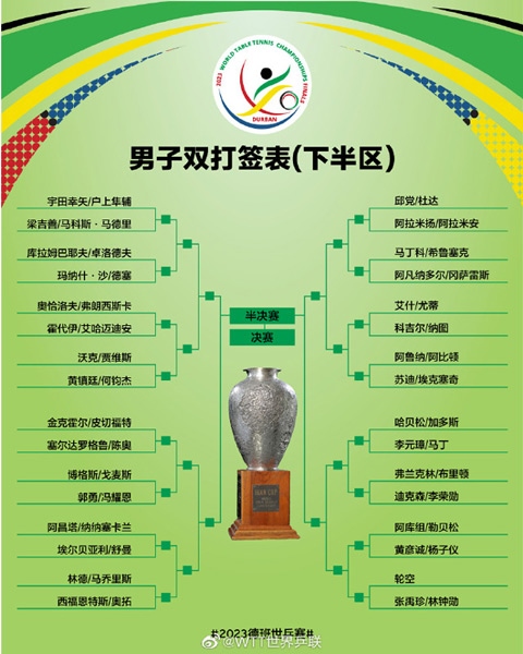 2023德班世乒賽男單具體抽簽結(jié)果: