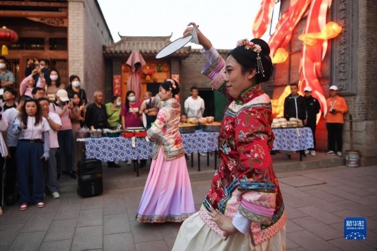 5月19日,演員在河口古鎮(zhèn)“黃河燈展”上演出。
