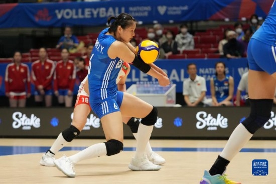 6月2日,中國(guó)隊(duì)球員李盈瑩在比賽中傳球。新華社記者 張笑宇 攝