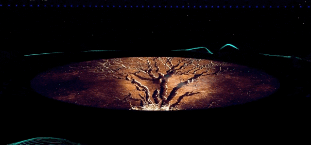 橫跨全場(chǎng)的立體網(wǎng)幕上
