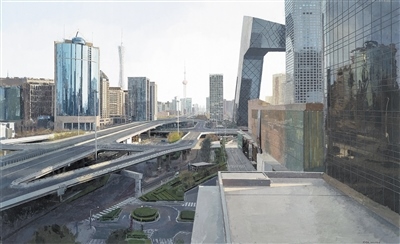 油畫《一線城市》,作者邱俊杰,選自“蔚然生長”2023中央美術(shù)學院本科生畢業(yè)作品展。中央美術(shù)學院供圖