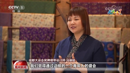 成都大運(yùn)會(huì)獎(jiǎng)牌綬帶設(shè)計(jì)師 馬麗娃:這個(gè)體育賽事其實(shí)是一個(gè)橋梁,通過(guò)這樣一個(gè)青年人的盛會(huì),把我們的優(yōu)秀傳統(tǒng)文化用肉眼可見(jiàn)的形式傳遞出去,我覺(jué)得這是非常棒的一種形式。
