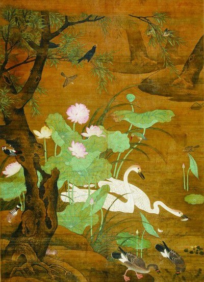 明代《荷塘聚禽圖軸》 四川博物院藏