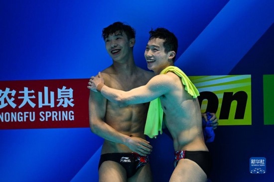 當(dāng)日,在2023年福岡世界游泳錦標(biāo)賽跳水男子雙人3米板決賽中,中國(guó)組合龍道一/王宗源以456.33分的總成績(jī)奪得冠軍。