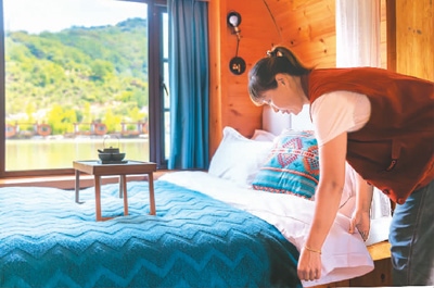 或面朝大海,或棲居山間,在很多人眼中,民宿管家的工作正是大家追尋的“詩與遠(yuǎn)方”。實(shí)際上,孔杰表示,民宿管家的日常工作綜合性強(qiáng),干起來并不輕松。她舉例說,除了提供基礎(chǔ)的住宿服務(wù),如辦理入住、接待、清潔、安排用餐等,還要為住客規(guī)劃出行路線、推薦游玩景點(diǎn),如怎么爬山戲水、景區(qū)數(shù)十處特色體驗(yàn)館如何游玩等。