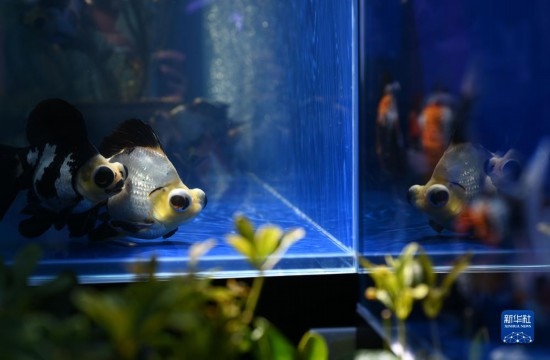 這是展出的熊貓蝶尾金魚(yú)(8月28日攝)。
