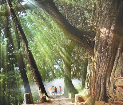 漫步在翠云廊蜿蜒的古道石板路上,松柏木的清香縈繞鼻尖,縷縷陽(yáng)光穿透樹(shù)蔭,側(cè)耳傾聽(tīng)風(fēng)拂樹(shù)干的聲音——一步一行中,收獲一段愜意時(shí)光。