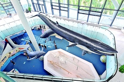 “南海鯨靈——南海鯨類標(biāo)本展”展區(qū)一角。中國(海南)南海博物館提供