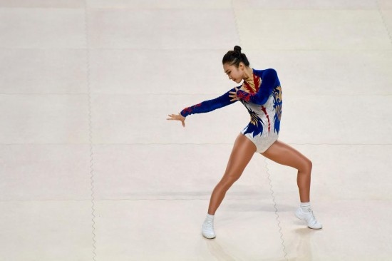 全國(guó)學(xué)青會(huì)上,健美操和啦啦操在大學(xué)組和中學(xué)組比賽中均各設(shè)5個(gè)項(xiàng)目。記者在位于廣西師范大學(xué)(雁山校區(qū))綜合體育館看到,在同一塊場(chǎng)地里,16米×16米的地膠板是啦啦操的比賽區(qū)域,一旁12米見(jiàn)方、墊有泡沫層的木地板則為健美操選手比賽所用?!斑@是因?yàn)榻∶啦俚碾y度動(dòng)作和操舞律動(dòng)更多,需要更大的緩沖。”區(qū)峻說(shuō)。