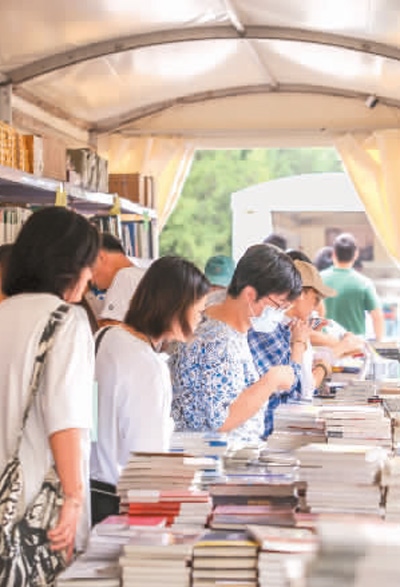游客在2023“我與地壇”北京書市現(xiàn)場選購書籍。本報記者 蔣雨師攝