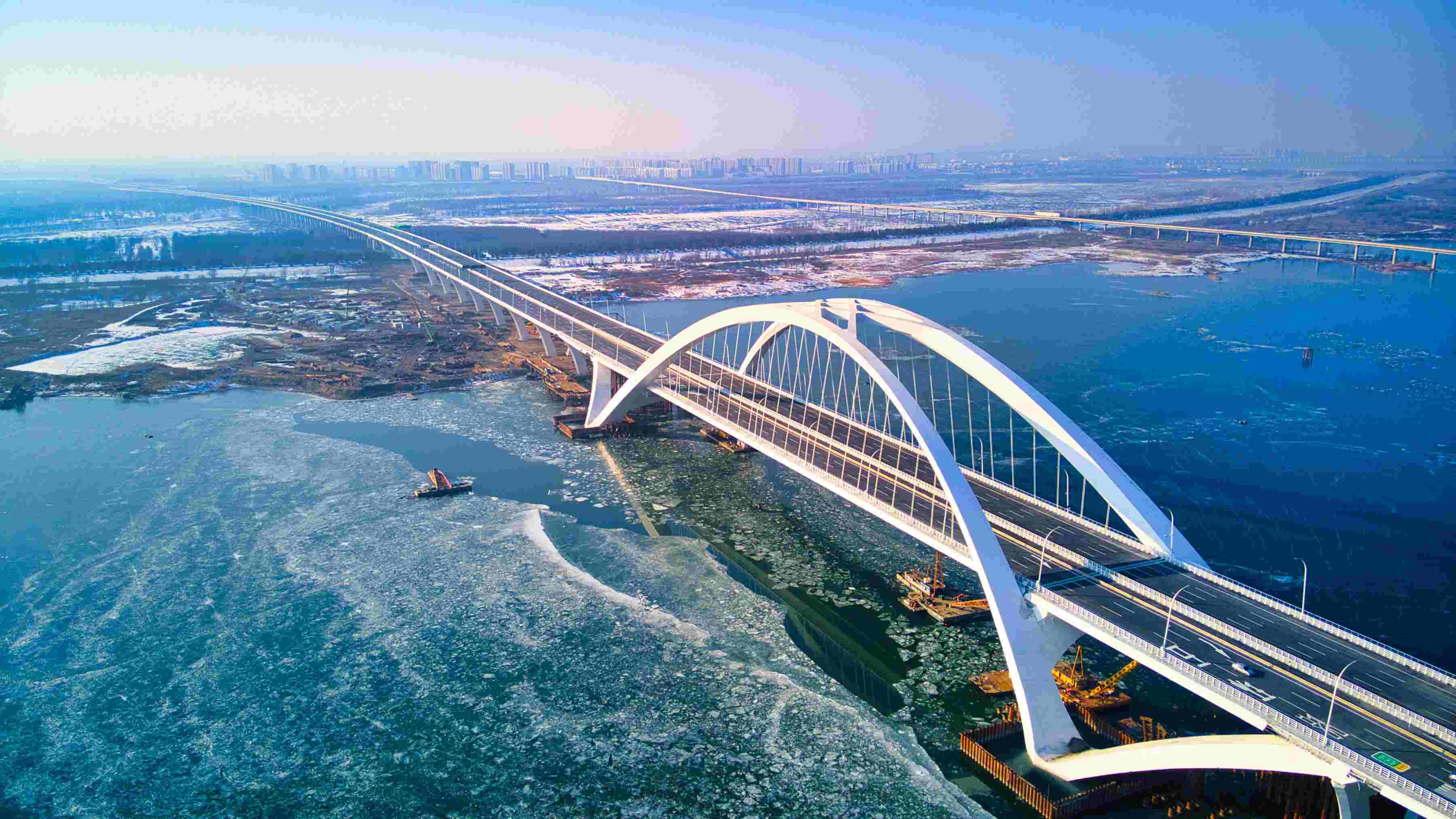 作為京雄高速全線重難點(diǎn)和控制性工程,京雄大橋已于2023年6月17日實(shí)現(xiàn)合龍,刷新北京橋梁?jiǎn)慰缈缍燃o(jì)錄。橋梁采用飛燕式拱橋結(jié)構(gòu),拱頂以“中國(guó)結(jié)”造型的風(fēng)撐連接,寓意北京與雄安兩座城市緊密聯(lián)系、協(xié)同發(fā)展。