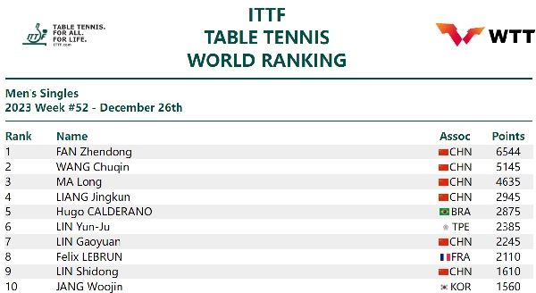 瑞士選手皮爾明·維爾納排名第二,美國選手克里斯托弗·利利斯獲得第三名,中國選手王心迪位列第四。另一名中國選手張一帆獲得男子年度最佳新秀。
