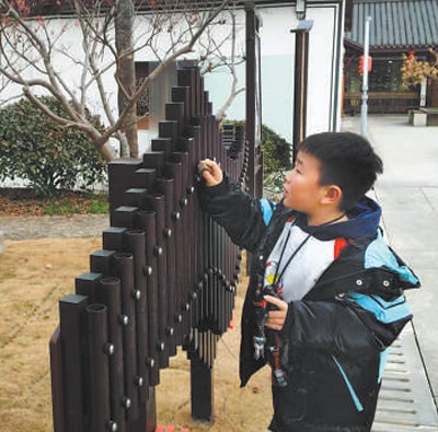 杭州市中泰竹笛展示館內(nèi),小朋友在體驗竹笛文化。本報記者 王 玨攝
