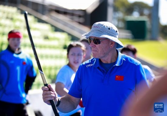4月26日,中國女曲隊(duì)助理教練理查德·查爾斯沃思與球員溝通。新華社記者 馬平 攝
