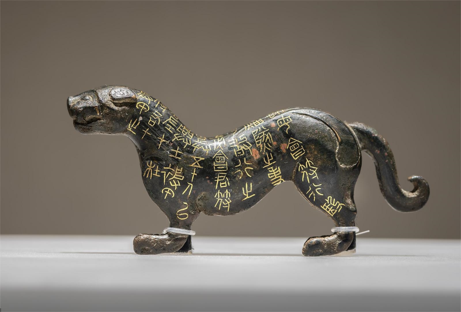 2300年前的戰(zhàn)國錯金杜虎符,讓人穿越歷史,感受戰(zhàn)國時期沙場秋點兵的磅礴氣勢。陜西歷史博物館藏的錯金杜虎符是一只霸氣虎,作行走狀,昂首,尾巴蜷曲?;⒎峡讨骸氨字?。右在君,左在杜。凡興士被甲,用兵五十人以上,必會君符,乃敢行之……”共9行40字,寫明了虎符的用法和調(diào)兵范圍。使用的時候,虎符必須左右兩半嚴絲合縫地對合在一起才能起效,這也是“符合”一詞的來歷。