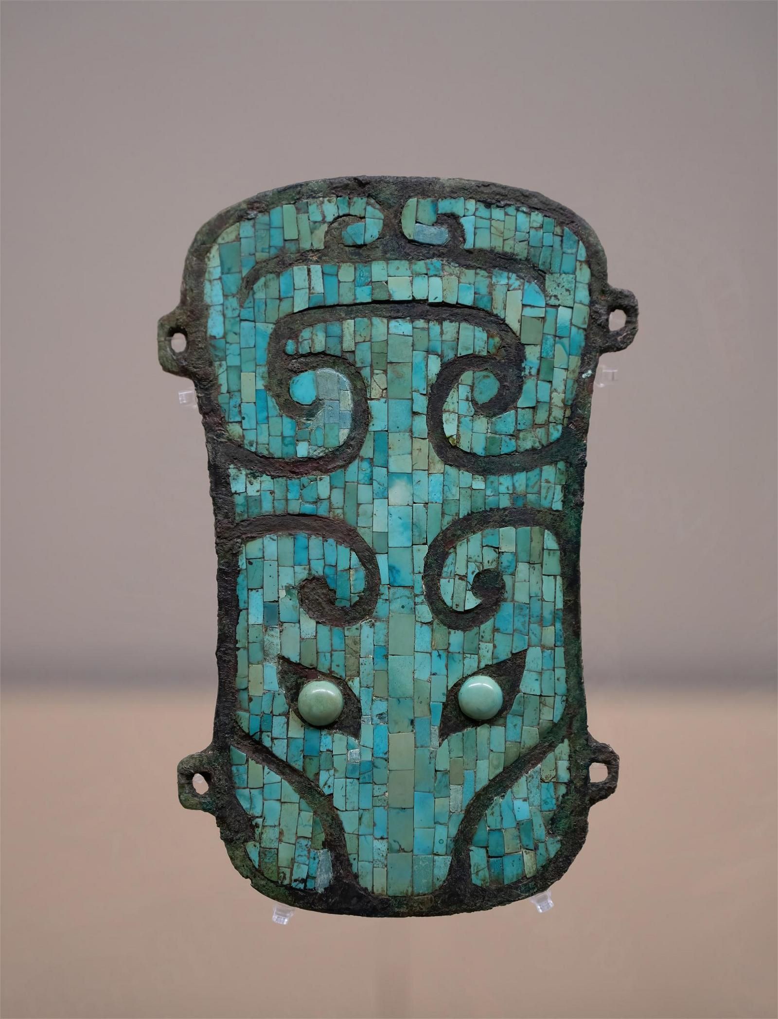 3500年前的鑲嵌綠松石獸面紋銅牌飾,是二里頭夏都遺址博物館的“頂流”。它器身用貴金屬青銅鑄出主體框架,略微拱起的弧形銅胎上,鑲嵌著數(shù)百片綠松石,神奇絢爛。它的發(fā)掘地二里頭遺址是中國古代文獻記載的第一個王朝夏朝的都城,牌飾上,綠幽幽的“眼睛”見證了“最早的中國”。