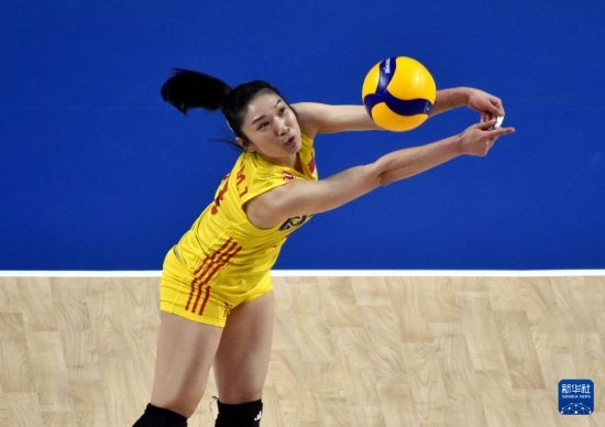 6月15日,中國(guó)隊(duì)球員王媛媛在比賽中扣球。新華社記者盧炳輝攝